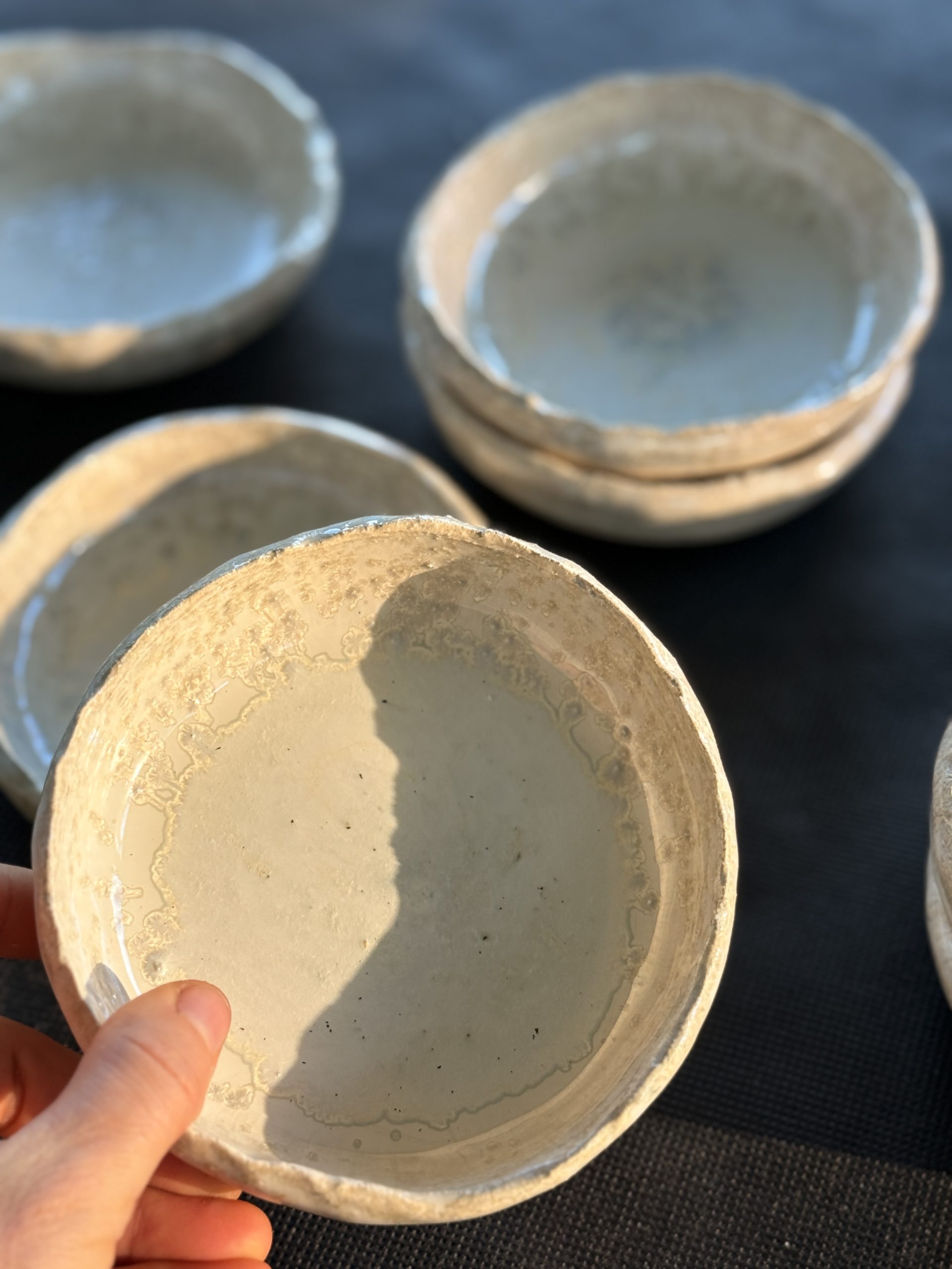 Je travaille la porcelaine et le grès blanc, rouge ou noir, lisse ou chamotté, je glane aussi ma propre terre pour des réalisations uniques.